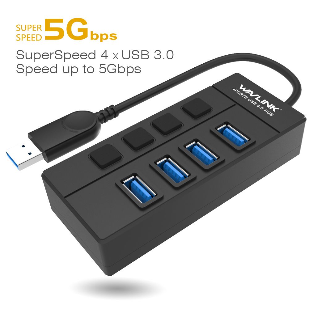 4 Port USB 3.0 Hub,Wavlink USB Hub with Individual Power Switches and LEDs Super Speed 5Gbps Data Transfer Hub for Mac Laptop Ultrabook and Tablet PC